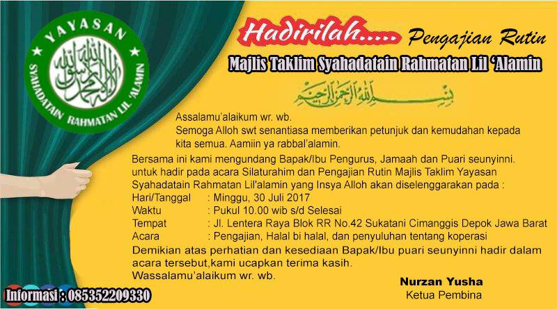 Dalam rangka merayakan hari raya Idul Fitri 1440H dan menjalin tali silaturahim serta mempererat ukhuwah, Yayasan melaksanakan Acara Halal bi Halal Keluarga Besar Yayasan Syahadatain Rahmatan Lil Alamin dan Keluarga Besar Yusuf Hamid yang Insya Alloh akan dilaksanakan pada : Jumat, 3 Syawal 1440 H
