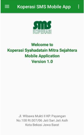 Dengan memanjarkan puji syukur kepada Allah swt, Alhamdulillah, pada tanggal 24 Januari 2019 Koperasi Syahadatain Mitra Sejahtera membuat inovasi layanan baru dengan meluncurkan Aplikasi Mobile Koperasi SMS yang bertujuan memberikan kemudahan kepada seluruh anggota dalam mengetahui Simpanan dan Pembiayaan di Koperasi Syahadatain Mitra Sejahtera.